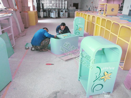幼兒園的鍍鋅烤漆鋼制垃圾桶采用冷軋鋼材料,外框鍍鋅鋼厚度為2mm;內膽鍍鋅鐵皮厚0.5mm; 外桶L550*W550*540*H1030MM;新做滴鍍鋅烤漆垃圾桶,搖蓋式雙面投遞,上面絲印工藝的印花保持3到4年。還絲印有不可回收垃圾,英文字母及環保標志等。五年以上的熟練老員工,經剪鈑下料、折彎、沖壓、焊接、打磨、等工藝:表面經過除油、噴砂防銹處理后,再進行酸洗磷化處理;表面清理干 燥后整體進行靜電噴涂或烤漆處理,靜電噴涂是經過流水線高溫固化爐固化后再出爐冷卻,加工后的塑粉附著力強,不易剝落。