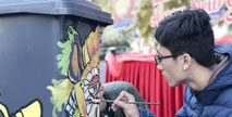 大學生涂鴉戶外垃圾桶換新裝傳播環保理念