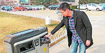 “啪!” 浙江大學紫金港校區(qū)內(nèi),走出寢室樓的同學們順手把垃圾袋投入了垃圾房里,有的同學細心地查看垃圾箱上貼的標識,把垃圾分別扔進了“可回...