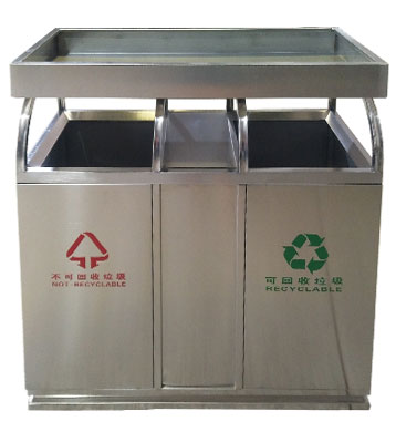深圳新標(biāo)準(zhǔn)城中村街道社區(qū)不銹鋼五分類垃圾桶由有害垃圾、玻璃、金塑紙(為金屬、塑料、紙張的簡稱)、廚余垃圾、其他垃圾這5分類不銹鋼垃圾桶組合而成。其中金塑紙、其他垃圾日常產(chǎn)生量較大,所以分類收集容器也