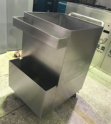 • 使用范圍:手推式不銹鋼垃圾桶表面光滑、亮麗,是電梯口、寫字樓、學校、物業、賓館、酒店、機場、汽車站等擺放的首選。