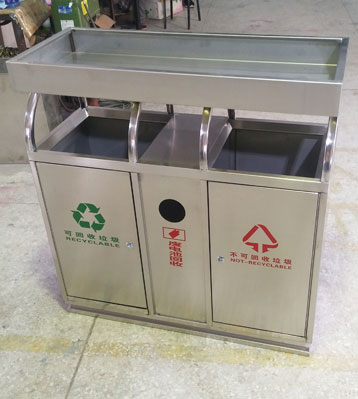 • 產品材質:不銹鋼戶外分類垃圾桶帶花盆采用201#,202#,304#優質不銹鋼材料模壓成型,堅固耐用,不易破損;耐火安全,抗高低溫,適合各種惡劣氣候條件;金屬亮澤,高雅美觀,廣泛適用于各種場所;內外表面光潔,減少垃圾殘留,易于清潔;配置鍍鋅板內桶,便于垃圾清倒;