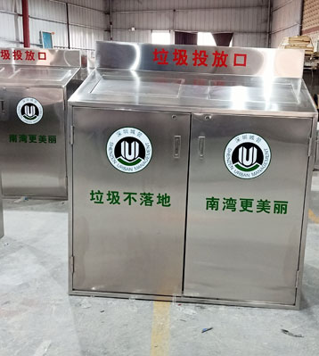 • 產品材質:大容量室外用垃圾筒采用足1.2厚304#優質不銹鋼材料經激光切割、數控折彎、焊接等一系列鈑金工藝成型,堅固耐用,不易破損;耐火安全,抗高低溫,適合各種惡劣氣候條件;金屬亮澤 ,高雅美觀,廣泛適用于各種場所;內外表面光潔,減少垃圾殘留,易于清潔;配置大容量塑料內桶,可上掛車收運解放環衛工人勞力;