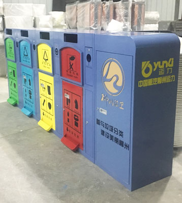 • ?產品規格:貨運站兩分類腳踏桶:500*500*1300mm;四分類帶工具箱腳踏桶:3250*595*1300mm