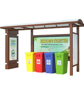 設(shè)有擋雨棚,可配備垃圾箱信息顯示屏、防水照明燈、廣告屏,進(jìn)行地面硬化。對社區(qū)玻金塑紙可回收物,其他垃圾,廚余垃圾,有害垃圾等生活垃圾定時(shí)定點(diǎn)投放收集.
