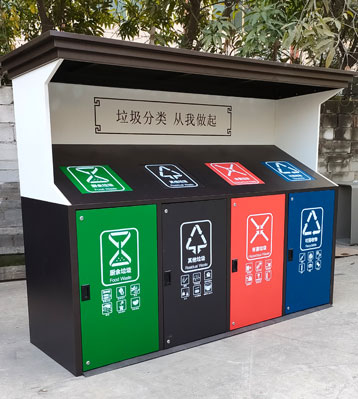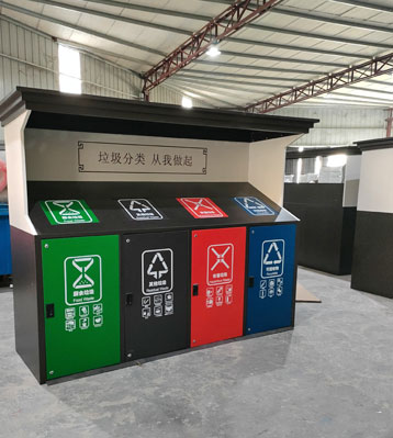 • 產品材質:城市花園小區大容量分類垃圾桶定點投放垃圾屋房站點整體尺寸制作需求可按地方標準要求定制,常用的制作材質有鍍鋅板、不銹鋼、戶外塑粉靜電噴涂,其工藝特點表現為較高的戶外適應性,表面涂層堅固,不易脫落,抗紫外線以及耐候性強??苫厥瘴锿犊跒樗{色,其他垃圾為淺灰色,廚余垃圾綠色,有害垃圾為紅色,顏色搭配美觀,可配套洗手盆投放后清洗。.表面無毛刺、無披鋒,棱角和邊緣做圓角處理.