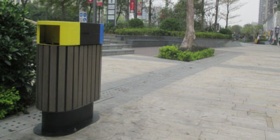 欣方圳戶外烤漆鋼木分類垃圾桶戶外擺放圖